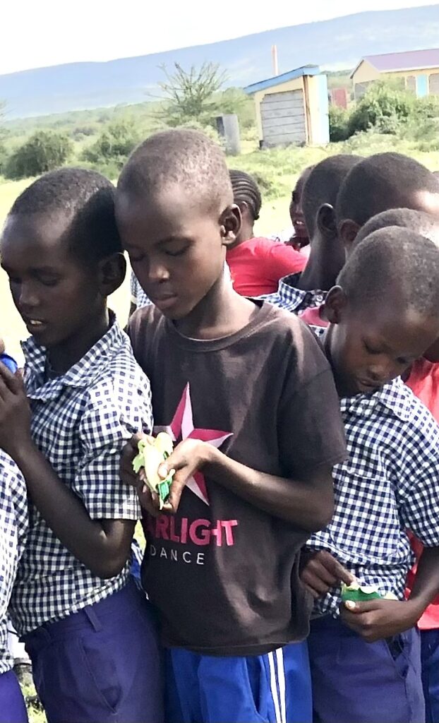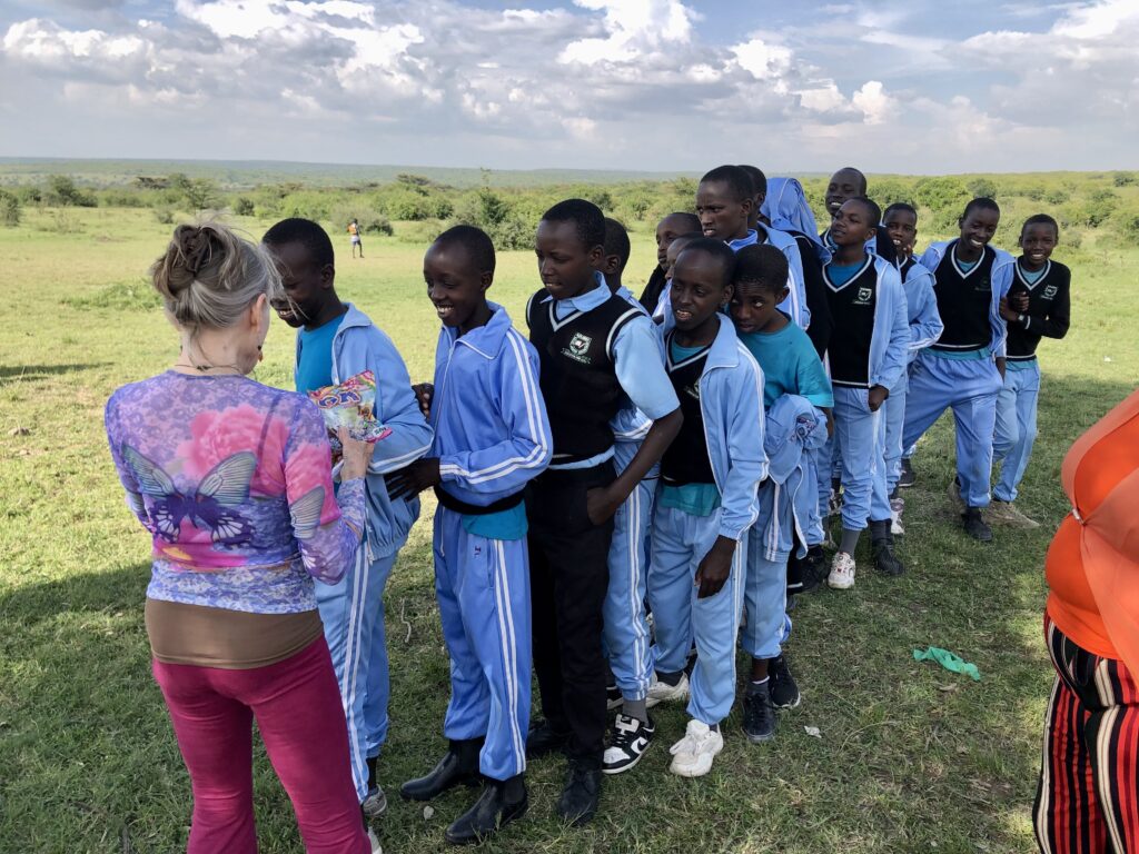 The series of adventures that awaited us turned out to be even more extraordinary than we imagined. In Nairobi, we walked through the slums accompanied by a local ballet teacher who runs a free after-school program. In the Maasai Mara, we visited rural schools where we handed out school supplies and soccer balls and entertained the kids with magic tricks and a puppet show. Our men worked side by side the villagers to install a water catchment on top of the village library. In conjunction with an NGO that supports women and helps keep girls in school, Tish and I distributed sanitary kits to a very appreciative class of high school girls. And of course, we saw the African animals!