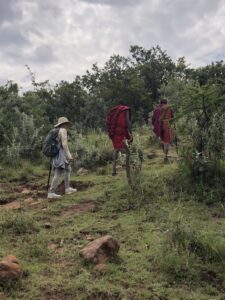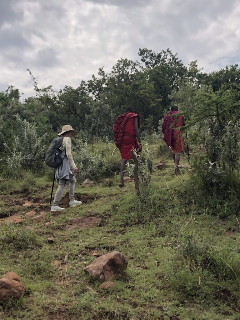 One of the most memorable moments for me was when we first arrived at the Women’s Center in the rural outskirts of the National Reserve. We had contacted the founder of the NGO while still in California and had arranged to work with the local women during our visit. After a challenging drive on a very rough and unmarked dirt road, we pulled up to the modest building and there were seven Maasai women in full traditional costume singing and dancing for us, in greeting. I felt like I was in a scene from a movie—in Africa!